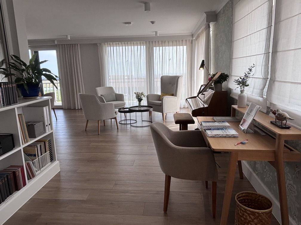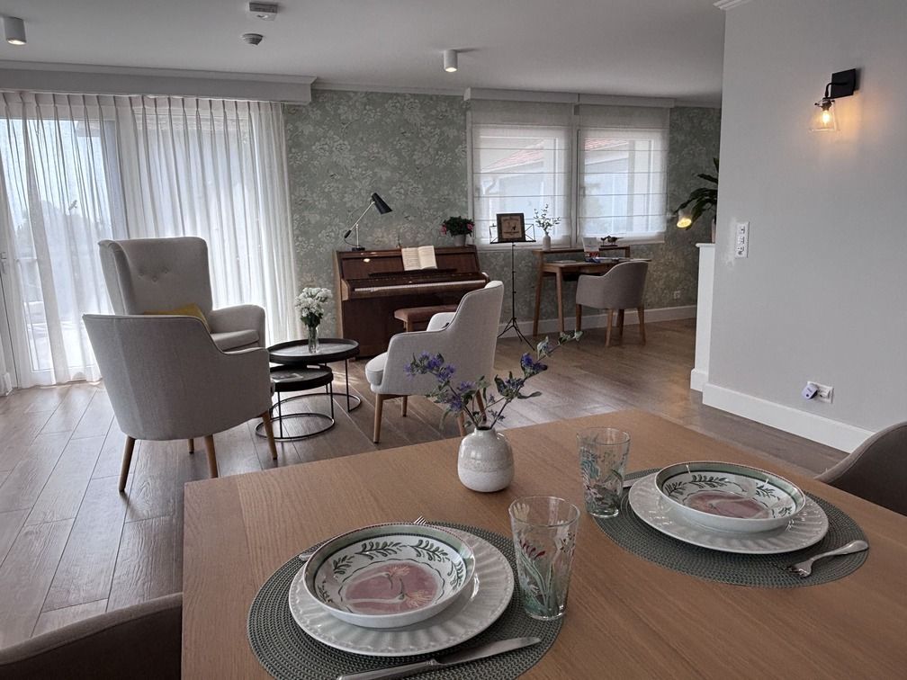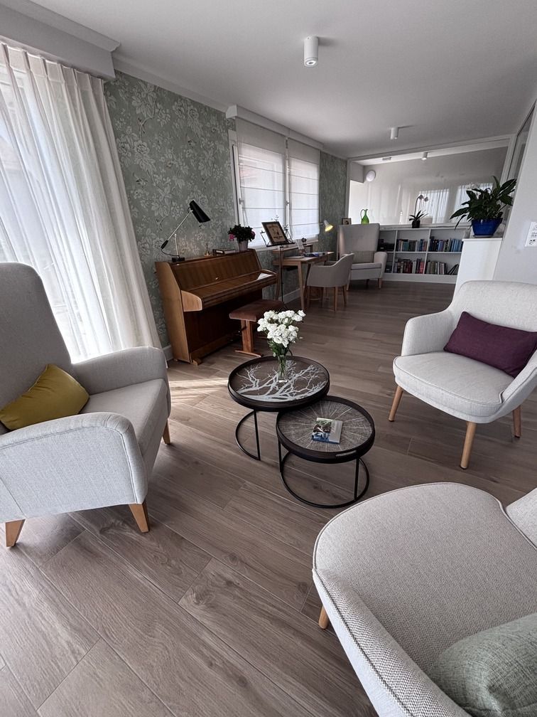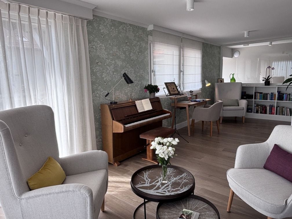 Les espaces communs de la Maison Le Verger ont été conçus pour favoriser des moments de partage et de sérénité. Des pièces baignées de lumière, à la décoration élégante et chaleureuse, invitent à la lecture tranquille, aux échanges amicaux ou à une pause musicale au piano.