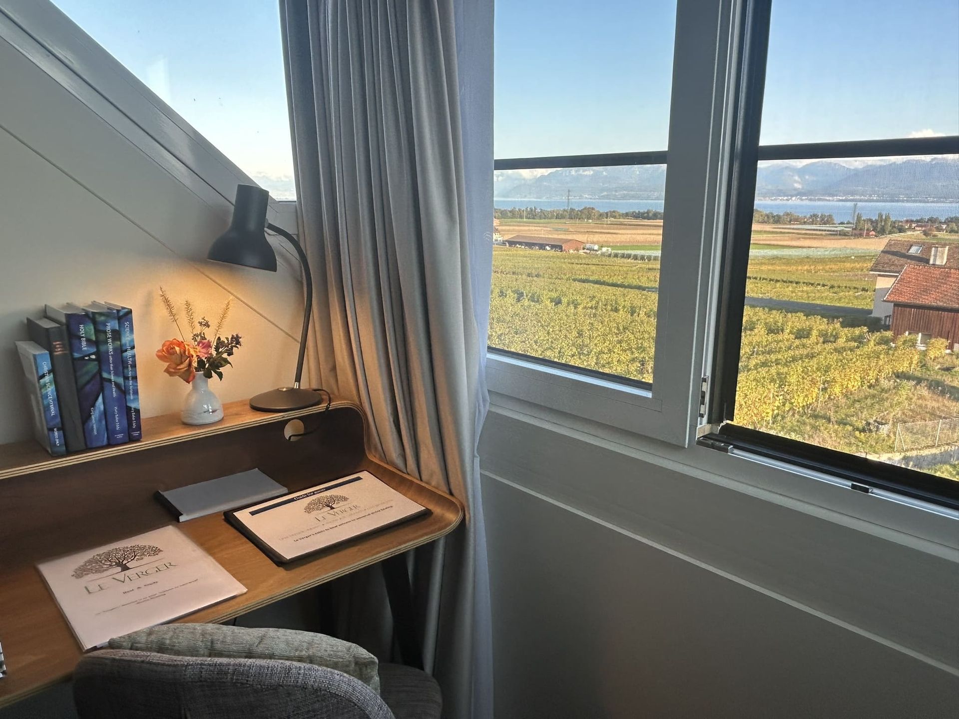 Avec des vues sur les vignes, le lac Léman et les montagnes environnantes, chaque espace reflète l’harmonie entre confort moderne et atmosphère inspirante. Que ce soit pour une retraite spirituelle, une période de ressourcement ou un séjour au calme, nos chambres vous accueillent dans un environnement propice à la tranquillité et à la régénération.