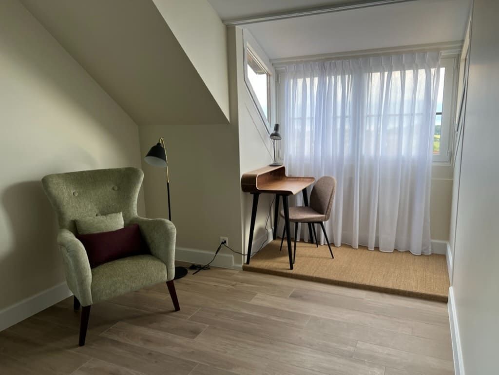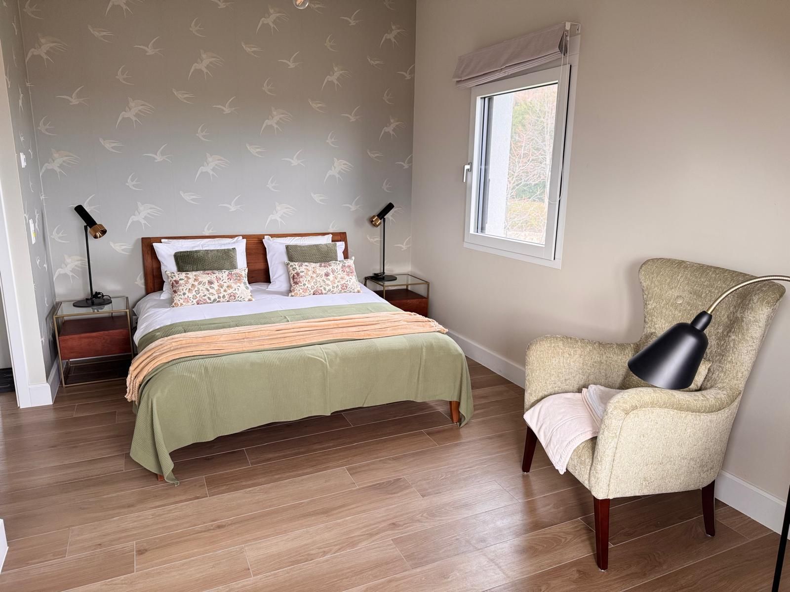 Les chambres de la Maison Le Verger ont été pensées pour offrir un cadre paisible et lumineux, où chaque détail invite au repos et à la réflexion. Baignées de lumière naturelle et décorées avec soin, elles allient élégance contemporaine et touches chaleureuses qui rappellent le charme alpin.
